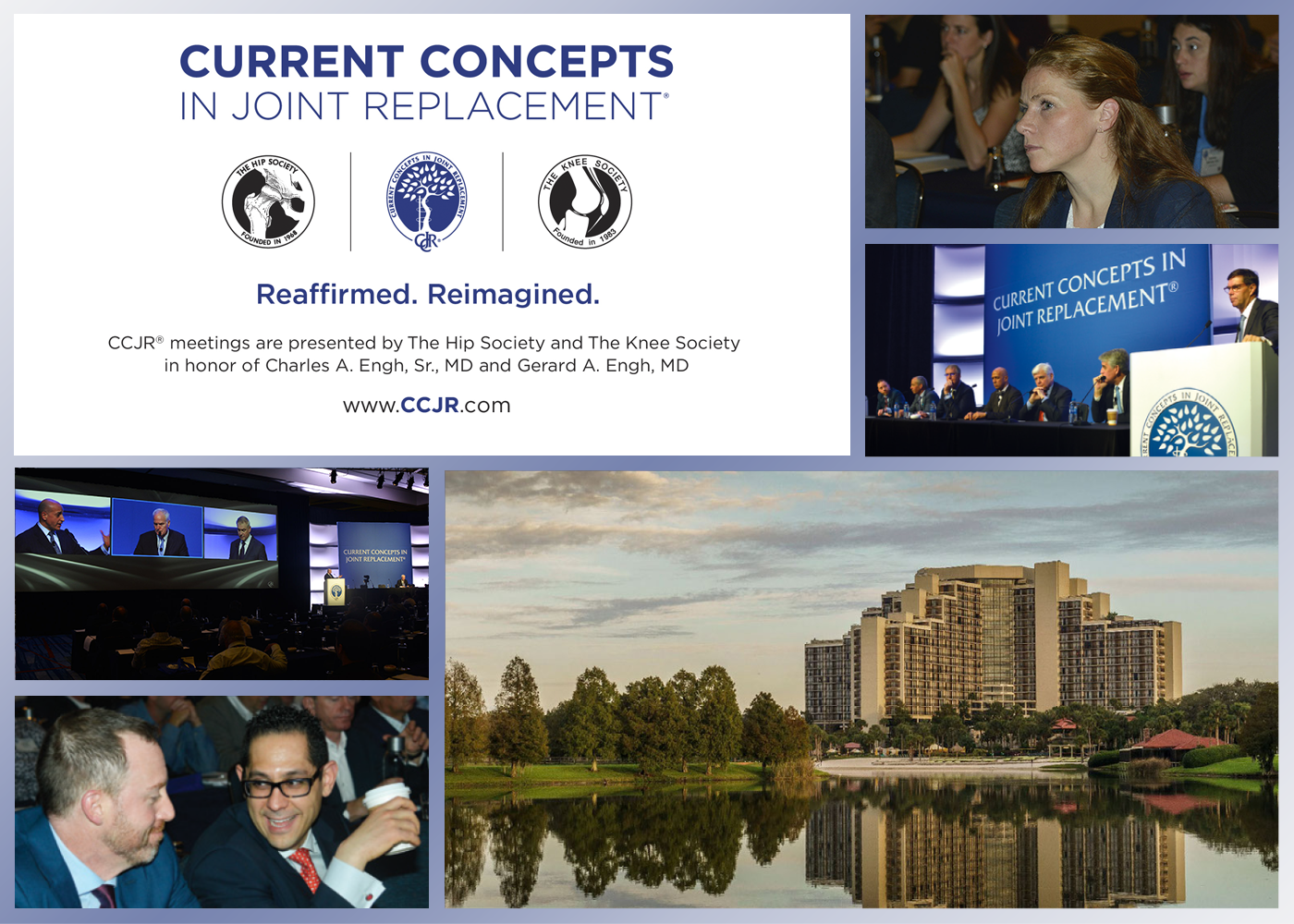 Current Concepts in Joint Replacement® (CCJR®) is a premier educational event, and a not-to-be-missed global arthroplasty forum presented by two esteemed academic organizations: The Hip Society and The Knee Society.